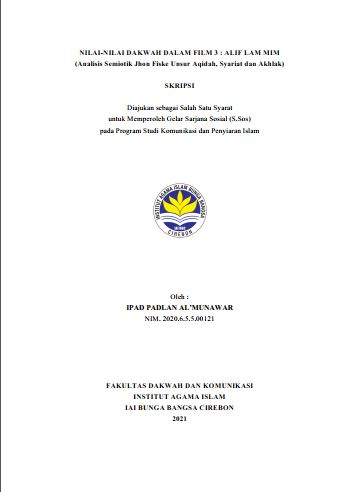 | Judul: | NILAI-NILAI DAKWAH DALAM FILM 3 : ALIF LAM MIM (Analisis Semiotik Jhon Fiske Unsur Aqidah, Syariat dan Akhlak) |