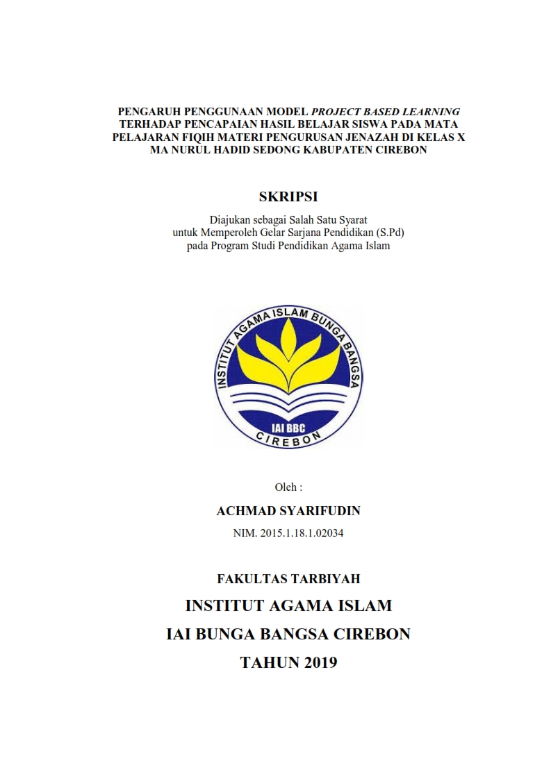 Pengaruh Penggunaan Model Project Based Learning Terhadap Pencapaian Hasil Belajar Siswa Pada Mata Pelajaran Fiqih Materi Pengurusan Jenazah di Kelas X MA Nurul Hadid Sedong Kabupaten Cirebon