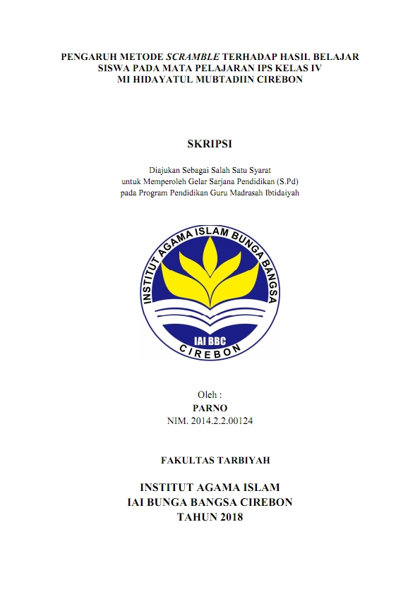 Pengaruh Metode Scramble Terhadap Hasil Belajar Siswa Pada Mata Pelajaran IPS Kelas IV MI Hidayatul Mubtadiin Cirebon |