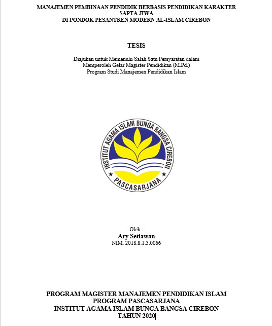 | Judul: | Manajemen Pembinaan Pendidik Berbasis Pendidikan Karakter sapta jiwa di Pondok Pesantren Modern Al-Islam Cirebon |